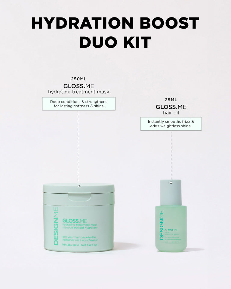 Cheveux assoiffés, voici votre allié ! Ce duo en édition limitée laisse vos cheveux doux, brillants et éclatants de santé toute l'année. Enrichi en huile de graines de cannabis sativa, ce coffret hydratant comprend le masque GLOSS.ME, un soin nourrissant intense de 5 minutes qui fortifie la fibre capillaire, et l'huile capillaire GLOSS.ME, qui discipline les frisottis, sublime la brillance et hydrate en toute légèreté. De la douche au coiffage, ils agissent en synergie pour des cheveux forts, soyeux et naturellement magnifiques.